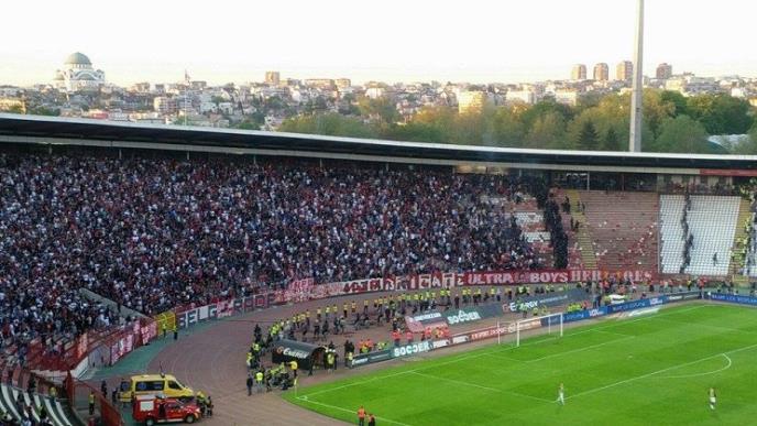 Na severnoj tribina stadiona Rajko Mitić u Beogradu došlo je to tuče navijača Crvene zvezde i pripadnika Žandarmerije u poluvremenu 151. večitog derbija sa Partizanom.