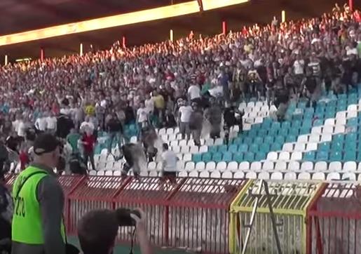 U jednom trenutku jedan navijač Partizana je probio policijski kordon i krenuo je ka pristalicama Zvezde. On je naleteo na drugi kordon policije, a onda je dobio batine.