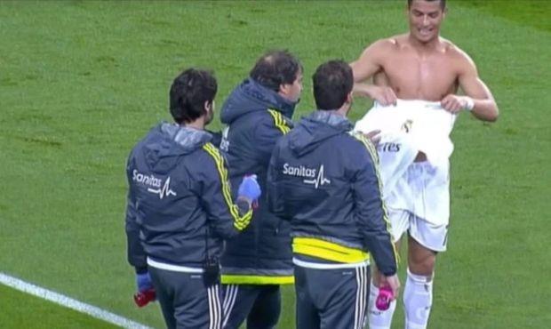Ronaldu je u 75. minutu meča 34. kola Primere u duelu sa protivničkim igračima iscepan dres. Portugalac je došao do aut linije i zatražio novi dres.