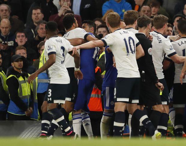 Derbi meč 36. kola engleske Premijer lige izneđu Čelsija i Totenhema završen je bez pobednika, 2:2, ali je obilovao brojnim incidentima.