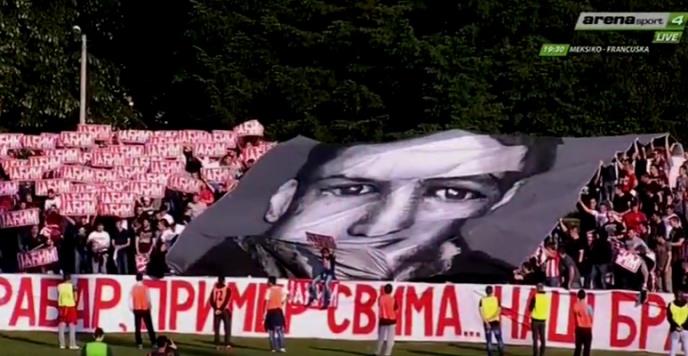 Navijači Crvene zvezde napravili su na početku drugog poluvremena utakmice sa Borcem koreografiju, koja je posvećena ubijenom pristalici crveno-belih Aleksandru Jaćimoviću.