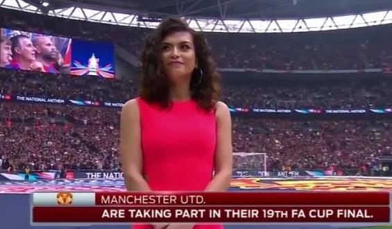 Mlada britanska pevačica Karen Harding žestoko se obrukala uoči finala engleskog FA kupa između Mančester junajteda i Kristal Palasa.