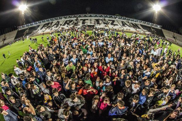 Posebnu sliku humanitarnom fudbalskom spektaklu dalo je preko 7.000 dece sa roditeljima koji su ispunili istočnu tribinu stadiona.