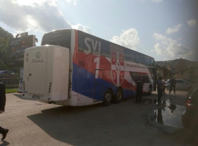 Ekipa je na stadion u Užicu stigla autobusom sa posebno ispisanom porukom i grbom Fudbalskog saveza Srbije. Na autobusu je pisalo: