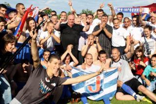 JAGODINA - Fudbaleri Jagodine istorijski plasman na međunarodnu scenu proslavili su danas uz trubače, kao i bacajući uvis gradonačelnika Dragana Markovića Palmu.