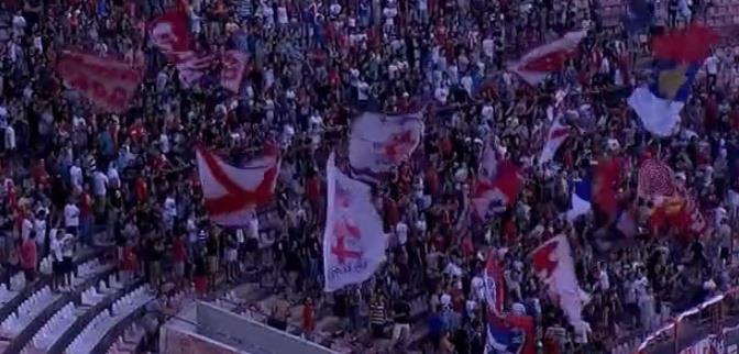 Navijači Crvene zvezde na početku drugog poluvremena napravili su spektakularnu bakljadu koja je trajala nekoliko minuta.