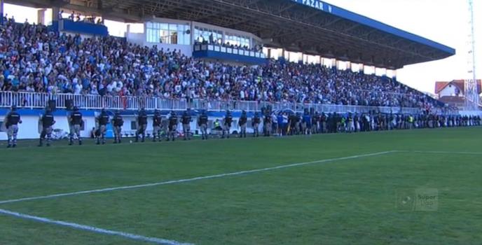 Sa tribina gradskog stadiona čuli su se skandalozni povici "Kosovo je pored Srbije", "Ovo je Turska", "Žuta kuća", "Naser Orić"...