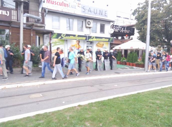 Mirno je i nema incidenata, čak je primećen i momak koji u pravcu stadiona nosi buket cveća.