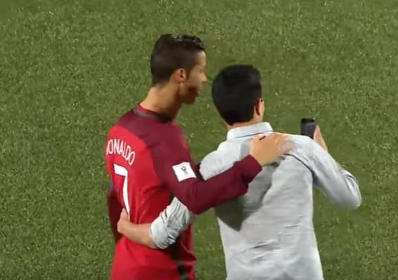 Ronaldo je uoči početka drugog poluvremena pozirao jednom navijaču koji je utrčao na teren. Navijač je napravio selfi sa portugalskom zvezdom.