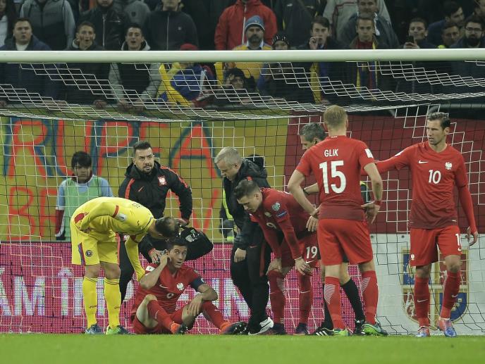 Kvalifikacioni meč za odlazak na Svetsko prvenstvo između fudbalera Rumunije i Poljske u jednom momentu je bio prekinut na 10 minuta, jer su domaći navijači topovskim udarom pogodili Roberta Levandovskog.