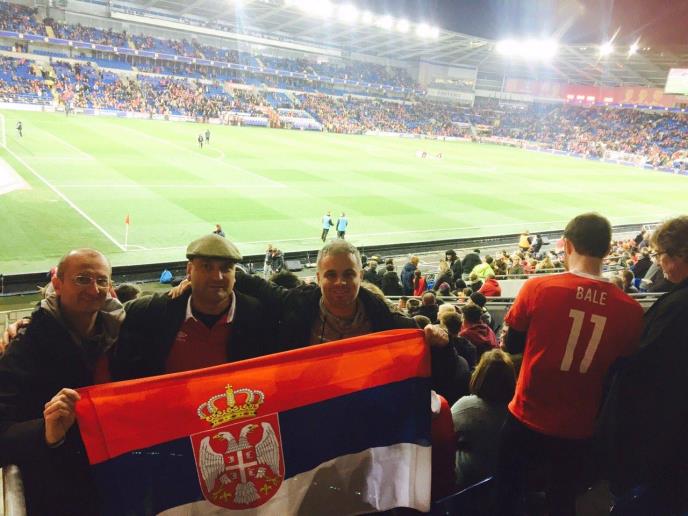 Fudbaleri Velsa i Srbije biju bitku za odlazak na Mundijal 2018. godine u Rusiji, a sa tribina stadiona u Kardifu bodre ih i petorica navijača koji su prevalili više od 2000 kilometara kako bi bodrili srpske "orlove".