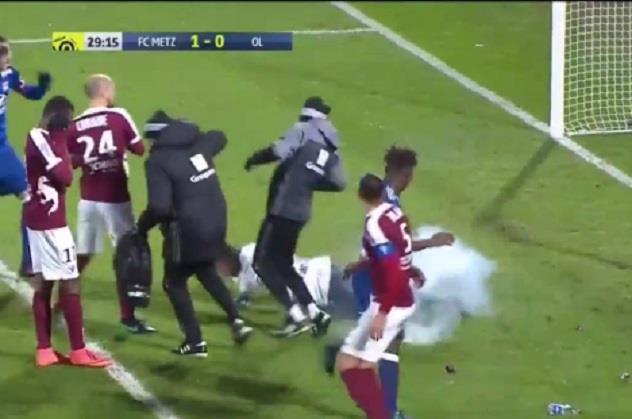 Utakmica francuskog prvenstva između Meca i Liona prekinuta je kada su domaći navijači petardom pogodili golmana gostiju Portugalca Antonija Lopeza.