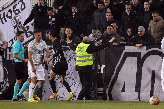 "Grobari" nisu ostavili Mažića na miru ni u nastavku utakmice, pa su ga u drugom poluvremenu gađali i praznom plastičnom flašom.