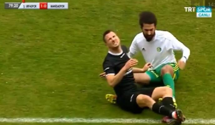 Fudbaler turskog drugoligaša Šanliurfe, Berkaj Degirmečioglu, brutalno je startovao na igrača Manise, Kosea Bahatina.
