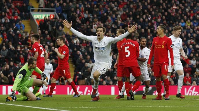 Fudbaleri Liverpula doživeli su poraz na svom stadionu od Svonsija 2:3 (0:0) u prvoj utakmici 22. kola engleske Premijer lige.