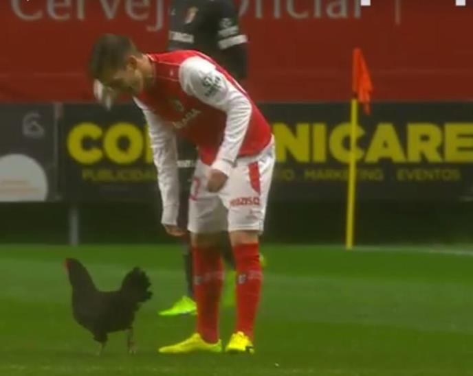 Reč je o petlu koji se suprostavio levom krilu Brage koji je pokušao da ga otera sa terena. Pernati prestupnik mu je uzvratio istom merom. Hrabri Portugalac uspeo ga je uhvatiti i predati jednom od redara uz teren.