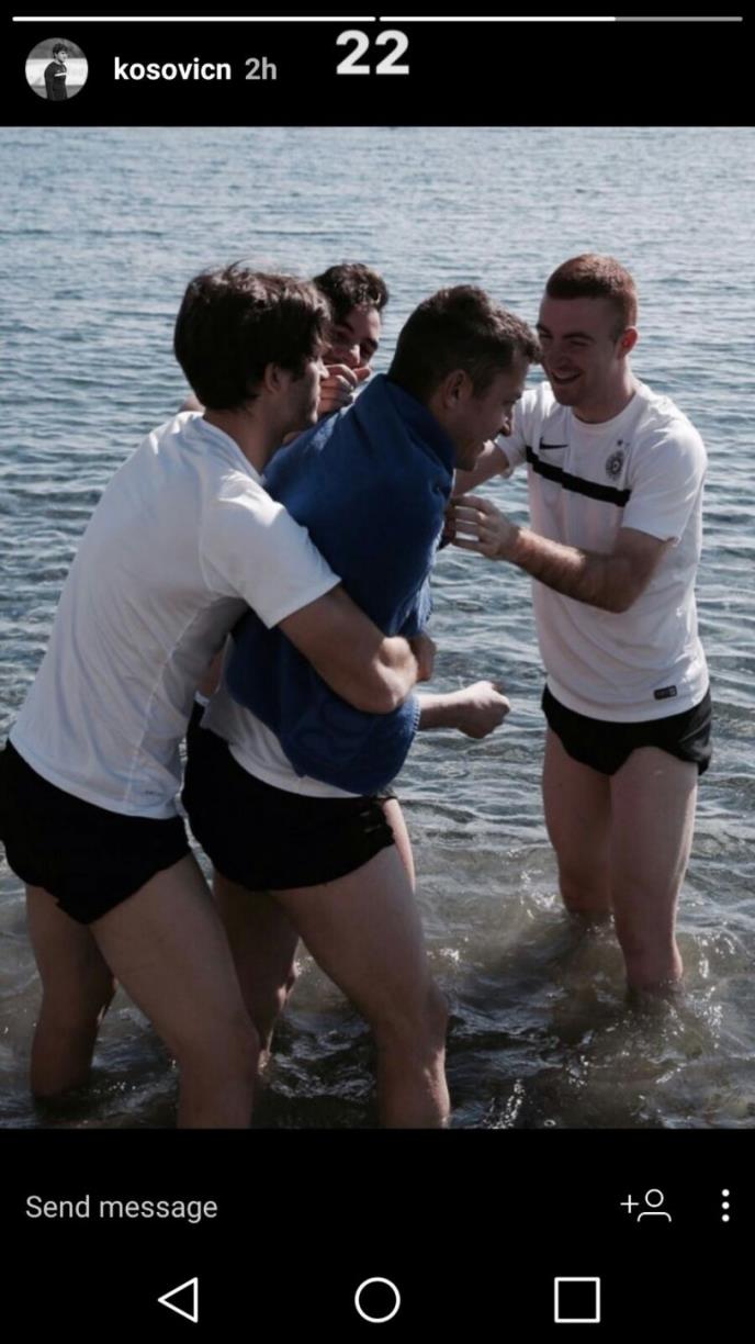 Ranije tokom dana saigrači su se našalili sa slavljenikom, pokušali su da ga ubace u more. Naravno, to im nije uspelo...