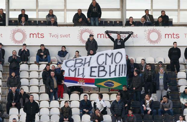 Navijači Partizana istakli su na meču protiv Borca transparente podrške brazilskom fudbaleru Evertonu, koji je vređan na rasnoj osnovi pre 6 dana na utakmici sa Radom.