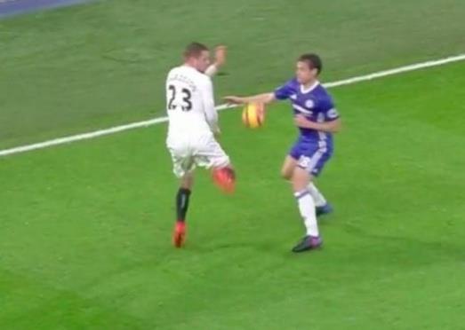 Arbitar nije video da je lopta pogodila u ruku Cezara Azpilikuetu. Protestovali su fudbaleri Svonsija, ali je sudija pokazao da se meč nastavi.