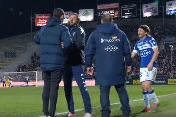 Nesvakidašnja scena viđena je u francuskom prvenstvu u meču između Angersa i Bastije, kada je pomoćni sudija sasvim slučajno udario fudbalera gostujuće ekipe u trenutku kada je ovaj izlazio iz igre.