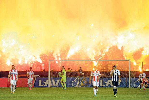 na tom derbiju su navijači Partizana pokazivali zadnjicu policiji i sprečavali vatrogasce da ugase požar