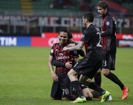 Fudbaleri Milana pobedili su danas na svom terenu Kjevo u 27. kolu Serije A i tako došli na šesto mesto tabele.Karlos Baka je dao dva gola za Milan i promašio je jedan penal, dok je strelac trećeg gola bio Djanluka Lapadula. Gol za Kjevo postigao je Džonatan de Guzman u prvom poluvremenu, koje je završeno 1:1.Milan je šesti sa 50 bodova, koliko ima i peti Lacio, dok četvrta Atalanta ima 51, ali ti klubovi imaju po meč manje.Kjevo je 11. na tabeli sa 35 bodova.