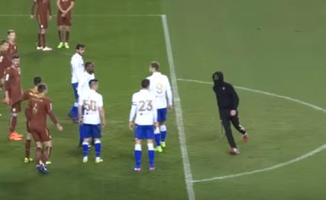 Huligan sa fantomkom na glavi i štanglom u rukama sišao je s tribine "Poljuda" i izašao na teren u finišu utakmice Hajduk - Rijeka.