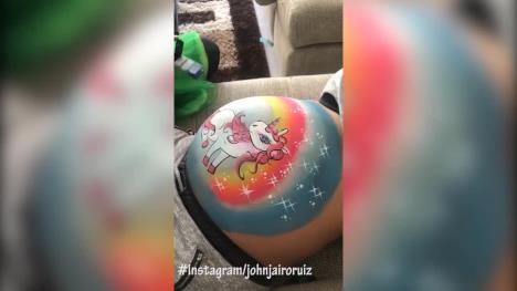 Sudeći po fotografiji koju je naslikao na stomaku i objavio na društvenim mrežama, a gde dominiraju ženski motivi, na putu je jedna devojčica.