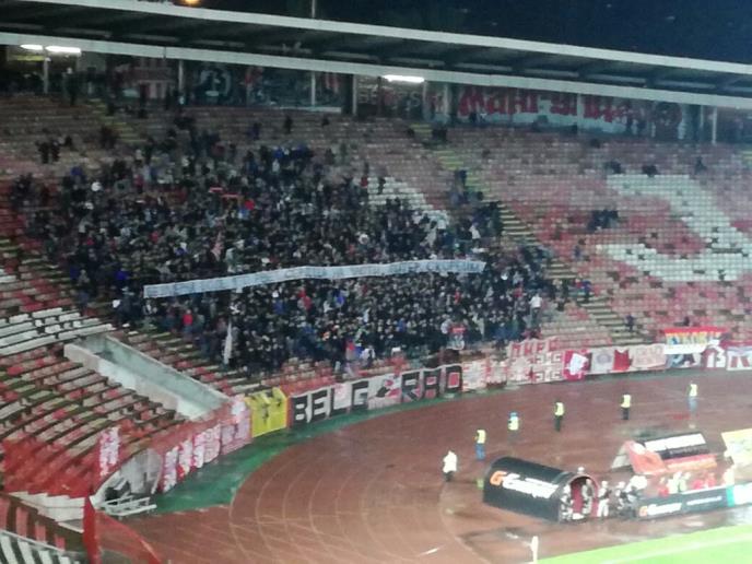 Navijači Crvene zvezde razvii su transparent na meču četvrtfinala Kupa Srbije u znak solidarnosti sa ruskim narodom posle terorističkog napada u Sankt Peterburgu.