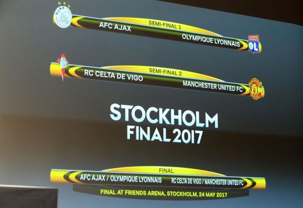 Fudbaleri Mančester junajteda igraće protiv Selte u polufinalu Lige Evrope, dok će se u drugom polufinalu sastati Ajaks i Olimpik Lion, odlučeno je žrebom u Nionu.