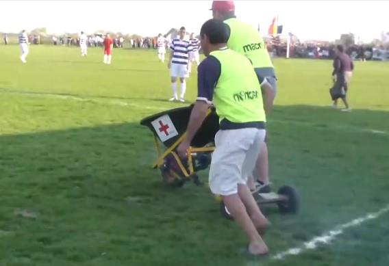 Velikom brzinom u teren su uletela kola hitne pomoći. Tačnije, bila su to kolica, prilagođena za ovakve prilike.