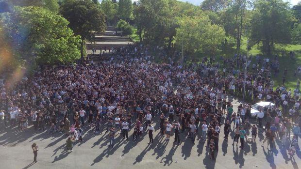 Navijači su se okupili na platou između severne i zapadne tribine, ispred velikog video-bima. Oni su stajali, sedeli po stepenicama, na travnjaku obližne zelene površine, a neki su i ležali, i svi zajedno su u društvu čekali početak meča.