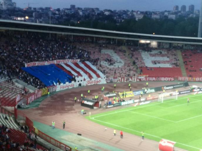 Navijači Crvene zvezde smešteni na severnoj tribini su početkom drugog poluvremena imali interesantnu koreografiju.