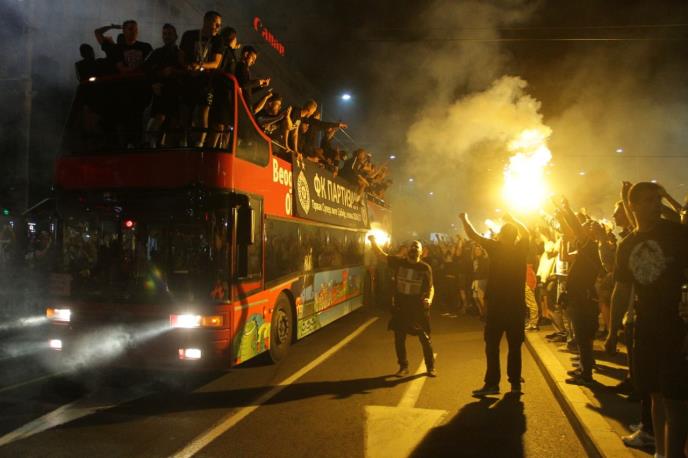 Hiljada i hiljada "grobara" radovalo se sa fudbalerima Partizana, koji su postali šampioni Srbije.