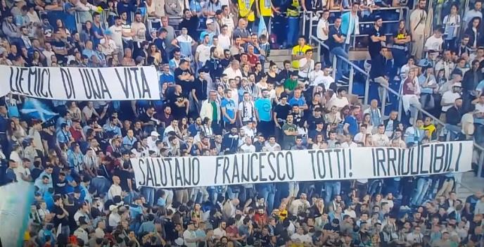 Pristalice Lacija iako su u nekim situacijama radikalni i ekstremni na emotivan način su se oprostili od legende Rome, Frančeska Totija transparentom na utakmici.