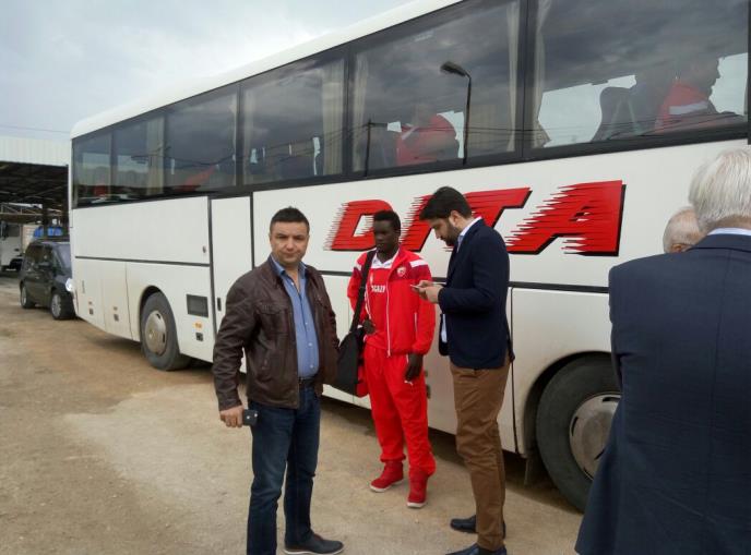 Ekspedicija fudbalskog kluba Crvena zvezda krenula je u poseti manastiru Gračanica, a na administrativnom prelazu Merdare čekalo se sat vremena zbog problema sa fudbalerom iz Ugande Kalida Aučeom.