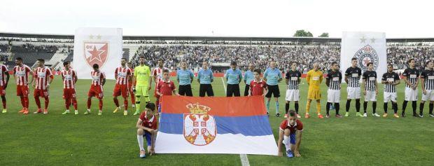 Uoči početka utakmice finala Kupa Srbije između Partizana i Crvene zvezde intonirana je himna Srbije "Bože pravde".