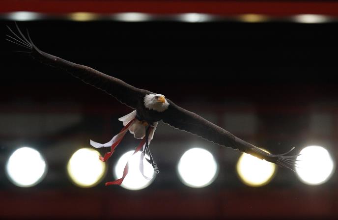 Orao je leteo sve dok nije sleteo na grb Benfike postavljen na centru terena.