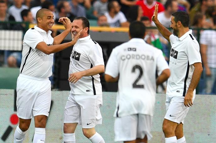 Na drugoj strani našli su se izabranici Avrama Granta: Mijatović, Leman, Salgado, Marćena, Kordoba, Dimaš, Pires, Karembu, Litmanen, Trezege, kao i Luis Figo, koji je bio i koorganizator događaja.