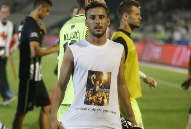 "Ovde sam samo zbog vas", što je bilo upućeno Grobarima, dok je pokazujući prstom ka loži sa upravom sočno opsovao.
