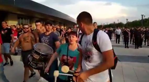 Navijač je postupio džentlmenski, prestao je da udara u bubanj i na trenutak napetu situaciju doveo pod kontrolu.