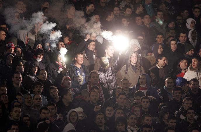 Navijači Zvezde su uspeli da odbiju napad i grupišu se.