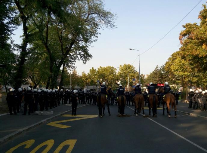 Veliki broj navijača Partizana, njih nekoliko hiljada krenuo je oko 17 časova na komšijski stadion. Gorbari su sve vreme pevali i palili baklje, ali nikakvih sukoba nije bilo.