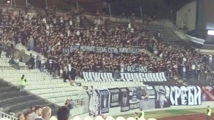 Navijači Partizana tokom utakmice protiv ekipe Mladosti iz Lučana razvili su na južnoj tribini transparent kojim su napali Fudbalski savez Srbije.