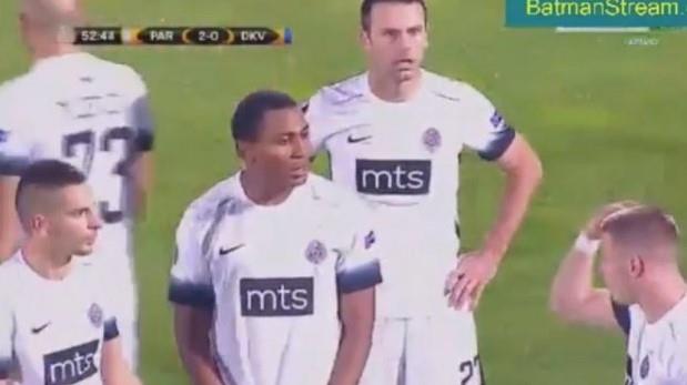 Prilikom slobodnog udarca za goste, napadač Partizana je nepotrebno digao ruku visoko i skrivio penal.