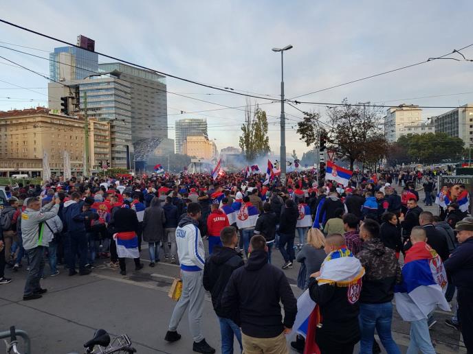 Više hiljada pristalica srpskog tima promarširalo je kroz Beč ka stadionu "Ernst Hapel".
