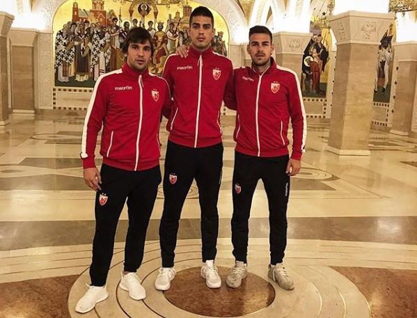 Prvotimci Crvene zvezde Vujadin Savić, Filip Stojković i Marko Gobeljić posetili su Hram Svetog Save uoči utakmice protiv Arsenala koja je na programu od 19 časova na stadionu "Rajko Mitić".