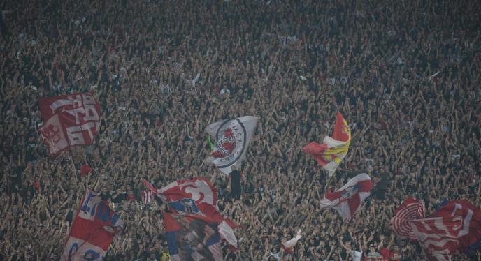 Početkom drugih 45 minuta meča 3. kola Lige Evrope sa Arsenalom navijači Crvene zvezde razvili su šetalicu sa likom Svetog Simeona Mirotočivog.
