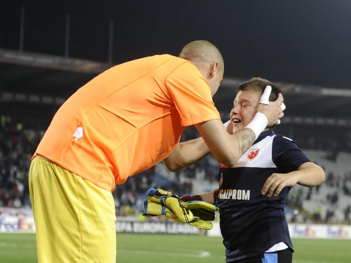Golman crveno-belih Milan Borjan posle meča bio je vidno utučen, ali i pored toga tešio je saigrače...