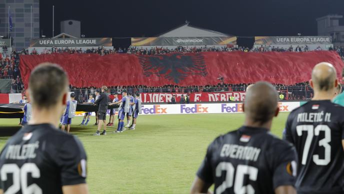Navijači Skenderbega pevali su provokativne pesme na utakmici sa Partizanom u Elbasanu.